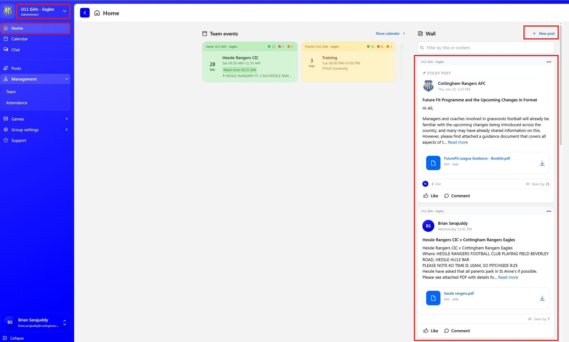 - Sharing match details (venue, directions, kick-off time, matchday instructions)